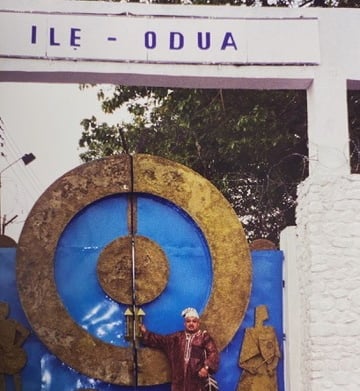 Oba Oriate Yeye Idé, Chief Osebile Ilé Ifé, fundador de esta casa, escuchó por primera vez su destino en una consulta con caracoles.